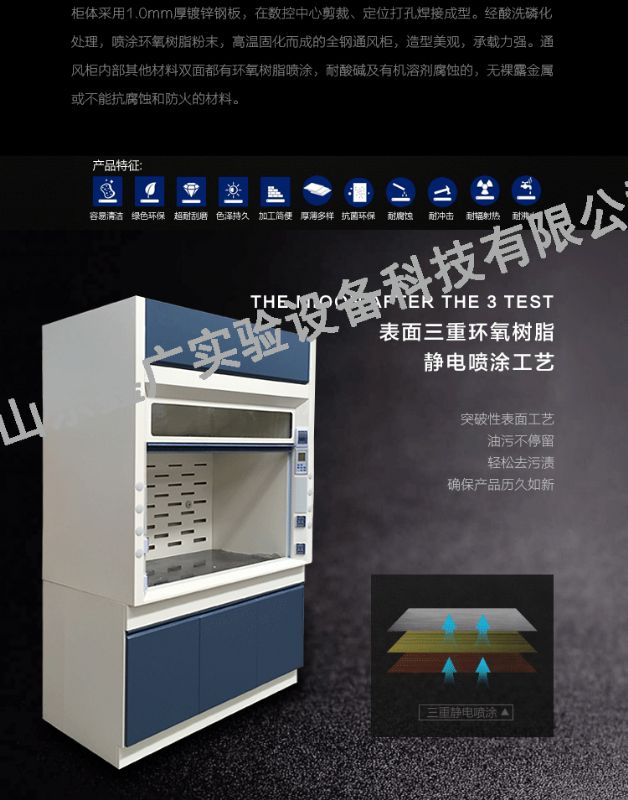 4、通風柜正前方全部為玻璃視窗,有良好的可視范圍。擾流板和內襯材料一致,擾流板支架由非金屬材料構成。